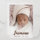 Elegant Script Foil Birth Announcement Card featuring your newborn baby photo on the front with details like birth date, weight and lenght and the baby’s name in real foil embellishment. The text in foil finishes is all customisable for your personalisation.