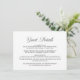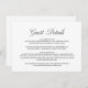 Looking for the perfect finishing touch to your wedding invitations? Look no further than this classy minimalist wedding guest details enclosure card. With elegant black script and classic lettering on a white background, this enclosure card is perfect for formal weddings that exude sophistication. You can also customise the colours of the text and background to match your theme and wedding stationery. Don't let your guests miss any important details for your big day. Order your wedding guest details enclosure cards today and make sure your wedding invitations are complete!