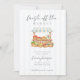 This bridal shower invitation looks like a sweet little market full of fruits, flowers, and soft colors. The stand feels cheerful and fun, like a place you would love to visit on a sunny day. The light blue stripes and pretty flowers make it feel calm, friendly, and happy.