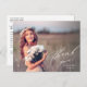 This elegant graduation thank you postcard features a full photo and elegant calligraphy. "Thank you" is written in pretty white script in the lower right corner, with the graduate's name and graduation year below. This white typography design overlays a full photo of the new graduate (horizontal/landscape orientation). On the back, you can write a custom message to recipients, or delete the template text to create a blank area for a handwritten note.
