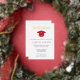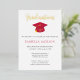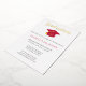 This graduation announcement features a red cap and gold foil lettering. All text on the front and back is editable. Add a photo to the back of the card to create a truly unique graduation invitation.