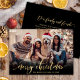 Modern Elegant Script Black and Gold Single Photo Merry Christmas Holiday Card. This festive holiday card features one photo, a stylish whimsical ‘Merry Christmas’ greeting in elegant hand-lettered calligraphy photo overlay (black gradient) on front. The text is displayed in a faux gold brush script with swashes, beautifully set against a black background. The reverse side showcases your message. Perfect for sharing holiday cheer with family and friends during the Christmas season.