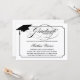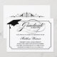 © Socialite Designs. Our elegant script "graduate" text and graduation cap, with black text on white background, add a touch of simple elegance to this graduation invitation. The back of the invitation includes text for the continuing education or milestones of your child. Easily replace our template text for your special event. All design elements can be moved, rotated resized or deleted individually.