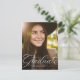 Celebrate your grad and invite guests with this classic vertical one-photo graduation announcement postcard that features an elegant modern calligraphy script on the front and a customisable back for your party details.