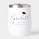 An elegant thermal tumbler to toast and celebrate the graduate. "Graduate" is written in a chic modern script with a grad cap on top. Personalise with their name, school and class year.