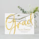 Celebrate the graduate in style with this graduate gold foil invitation, perfect for a graduation party invite that shines with sophistication. Featuring an elegant calligraphy script and a watercolor grad cap, this design is ideal for high school or college graduates. The classic typography design and simple stylish grad aesthetic create a timeless look. With a refined no photo template, this announcement card is a chic way to honour the class of your graduate and invite guests to a memorable celebration!