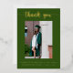 Say thank you to all your graduation guests with this elegant gold foil graduation thank you card. This card features a green background with gold foil text. Text on the front and back can be customised to create your own personal message.