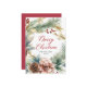 Modern Elegant Calligraphy Script Watercolor Botanical Greenery Wreath Christmas Non Photo Christmas Cards. This festive Christmas Holiday cards features a watercolor wreath with pine branches, red berries and pinecones. With a „Merry Christmas” greeting text which is written in a prety airy hand lettered font type in red. On the reverse side red background with pre-made message. This festive custom Christmas Cards are a great way to remind loved ones that you're thinking of them this Winter Holiday Season.