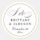 Elegant black and white wedding sticker with "I do" in calligraphy and editable gold border accent. Customise the background colour as well.
