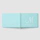 A simple elegant white script initial monogram aqua wedding guest book for your reception. A keepsake from your wedding.