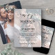 Invite family and friends to a simply elegant wedding celebration with a stylish monogrammed 2 photo invitation. Pictures and all wording are simple to personalise to include any details of your choice. (IMAGE PLACEMENT TIP: An easy way to centre a photo exactly how you want is to crop it before uploading to the Zazzle website.) The modern minimalist black and white design features two pictures of the wedding couple overlayed with trendy script calligraphy initials and chic typewriter style typography. All ceremony and reception wording can be customised or deleted. This invitation makes an elegant addition to the upcoming special day celebration.