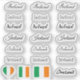 Countour Stickers: Elegant script Name set - Ireland & Irish Flag - custom name in 6 x 3 different handwriting personal fonts. Cool black handwritten stickers allows you to mark your items, put name on with personal touch / name can be costumised