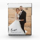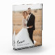 Beautiful wedding day photo block keepsake. The word Love is designed in an elegant script including bride and groom's name.