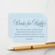 This stylish baby shower enclosure card features a light blue background, elegant dark grey calligraphy script, and typography. Simply edit the template with your details and choose paper options. Coordinating items are available in our store or the design collection.