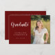 This graduation invitation features an elegant maroon-and-white theme with a photo. The photo is for placement purposes only and can be replaced with any photo of your choice. Customise text on the front and back of the card to create a truly personalised graduation party invitation. #graduationparty #classof #highschoolgraduation