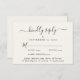 Elegant light cream wedding RSVP card that features "rsvp" in a chic script with swashes, simple and modern typography, personalised menu entree options and your names joined together by a heart on the back.