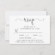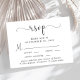 Elegant wedding RSVP card featuring "rsvp" in a chic calligraphy script with swashes, simple modern typography, your personalised menu entree options and your names joined together by a heart on the back.