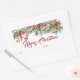 Elegant Script Merry Christmas Holiday Gift Rectangular Sticker features a beautiful bough of winter greenery with a festive red berries.