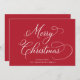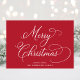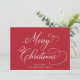 Elegant red holiday card featuring "Merry Christmas" showcased in a stylish white calligraphy script. Add your personalised greeting and family name in simple modern white lettering.