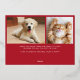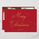 Elegant red holiday card featuring "Merry Christmas" showcased in a stylish calligraphy script and your family name in simple modern lettering, all rendered in your choice of genuine silver or gold foil. On the back, add two photos and your personalised greeting.
