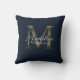 Elegant Script Metallic Navy Blue Gold Monogram Throw Pillow