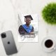 Stylish gold foil graduation announcement cards, featuring elegant calligraphy script with modern text in real foil (colour options are gold, silver and rose) and your graduate photo. The back of the card offers personalised text spaces for information about the graduation or can be reworded to make the card into a grad party invitation. Black writing on light silver grey on the back of the card or easily customise the background to a colour of your choice. To see more items like this, visit my store here at "www.Zazzle.com/LakeViewCardCo". Thanks