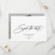 These elegant save the date cards offer a perfect way to announce your special day with style and grace. The design features an elegant modern script for the prominent "Save the Date" message, drawing attention with its flowing cursive font. Below, the names of the couple, wedding date, and location are neatly displayed in a simple yet refined typeface, adding a touch of sophistication. For a more personal option, the photo save-the-date design lets you feature a favourite photo of the couple, making the card truly unique and memorable. Ideal for couples looking for a blend of modern elegance and personal flair, these save the date cards set the tone for an unforgettable event. Whether you opt for the minimalist text-only version or the version with a photo, these cards ensure your loved ones will mark their calendars for your big day in style. Perfect for weddings, engagements, or special announcements, they add a timeless touch to your wedding stationery.