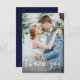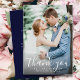 Elegant Script Modern Navy Blue Wedding Photo Thank You Card