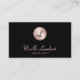 Elegant black minimalist business card featuring a monogram on a rose gold circle and your name set in chic and timeless script typography. A perfect way to make a lasting impression. Ideal for any professional like a makeup artist, beauty salon owner, hairstylist, nail specialist, aesthetician, beautician, and more. You can personalise the front with your monogram, name and title (or website address) and include your name, title, phone number, email, website address, social media accounts, a scannable QR code and "connect with us" text on the back.