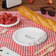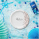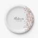 A simple and elegant paper plate that is easy to customise for many different celebrations. Add your name in a black handwritten font and the date in a modern typeface below. A splash of pink confetti decorates the right hand side.
