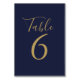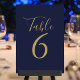 These elegant navy blue and gold table numbers can be personalized in chic gold lettering. Designed by Thisisnotme©