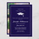 Celebrate in style with our timeless navy blue and white graduation party invitation, featuring frame, blue background, elegant scripted name & date, and graduation cap. Perfect for marking this significant milestone, this invitation promises to set the tone for a sophisticated and memorable evening. Add a personal touch by uploading your photo.