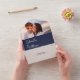 All in one wedding invitation featuring your photo, monogram initials and elegant modern minimalist typography on a navy blue background. The invitation includes a perforated RSVP card that’s can be individually addressed or left blank for you to handwrite your guest's address details. Designed by Thisisnotme©