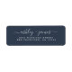 Chic, modern and simple wedding return address label with your names in white elegant hand written script on a dark blue background. Simply add your names and address. Exclusively designed for you by Happy Dolphin Studio. If you need any help or matching products please contact us at happydolphinstudio@outlook.com. We're happy to help you make your wedding the most beautiful day!