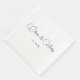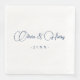 Elegant script navy and white wedding paper napkins. Easily add your custom details.