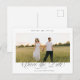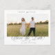 Announce your engagement in style with this elegant and timeless Save the Date postcard. The front of the card features a clean and classic layout with one photo and an elegant script for the Save the Date typography. The simple design highlights your favorite photo and the event details really stand out. The back of this design is set up as a postcard and you can hand write your personal note before mailing it. This design is perfect for couples who appreciate traditional style with a modern touch. With just a few clicks you can easily personalize your names, date, and photo to create a heartfelt keepsake your guests will cherish!