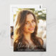 Elegant graduation thank you postcard featuring the graduate's photo overlayed with "thank you" in a chic modern white script and their name, school and class year in simple white typography. On the reverse side, personalise a thank you message and add the graduate's name in a signature-like script.