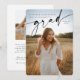An elegant graduation announcement featuring a handwritten script font overlay. Perfect for high school, college or university graduates. Just swap in your own photos and change the name, details and year. The back of the card provides space for a longer personal message. Other similar designs are available in my store.