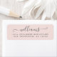 Chic, modern and simple family name return address label with your last name in off-black elegant handwritten script calligraphy on a pastel pink background. Simply add your name and address. Exclusively designed for you by Happy Dolphin Studio. If you need any help or matching products please contact us through our store chat!