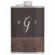 Elegant Script Personalised Monogram Brown Leather Hip Flask