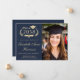 Elegant Script Photo Blue Gold College Graduation Announcement