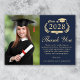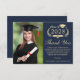 Elegant Script Photo Blue Gold Graduation Thank You Card