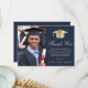 Elegant Script Photo Blue Gold Graduation Thank You Card