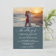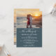 Elegant script photo wedding invitation template boho blue with two photos, simple black on white.