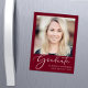 Celebrate your graduate with this burgundy red graduation announcement magnetic card featuring "Graduate" in an elegant white script and her photo and her name, school and class year in simple modern white typography.