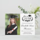 Formal college graduation announcement featuring "Class of" in an illustration of laurel wreath, a grad cap topper and a diploma, a photo of the graduate and their name in an elegant script. Add their school, major, honours or future plans in classic serif typography. On the back, add 3 additional photos and your personalised message.
