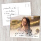 Elegant graduation party invitation postcard featuring the graduate's photo overlayed with "graduate" in a modern script and their name and class year in simple typography. On the reverse side, add the graduation party details.