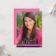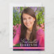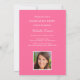 Elegant graduation party invitation featuring a full photo front with modern script first name and classic last name typography. Personalise the name, school, and class year. The back includes a coordinating pink design with party details, RSVP, and address lines for a clean, polished look.