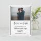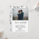 This elegant script photo save the date card is perfect for those of you who prefer the minimalist look. The black and white design features your favourite photo or formal engagement photo. The words Save the Date and the bride and grooms names are done in a beautiful, romantic script typography. The rest is done in a simple typeface to go along with the minimalist theme. Update the card with your information using the easy template provided. Reverse side of the card has an elegant black and white leaf pattern.