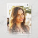 Elegant graduation thank you postcard featuring the graduate's photo overlayed with "thank you" in a chic modern script and their name, school and class year in simple typography. On the reverse, personalise a thank you message and add the graduate's name in a signature-like script.